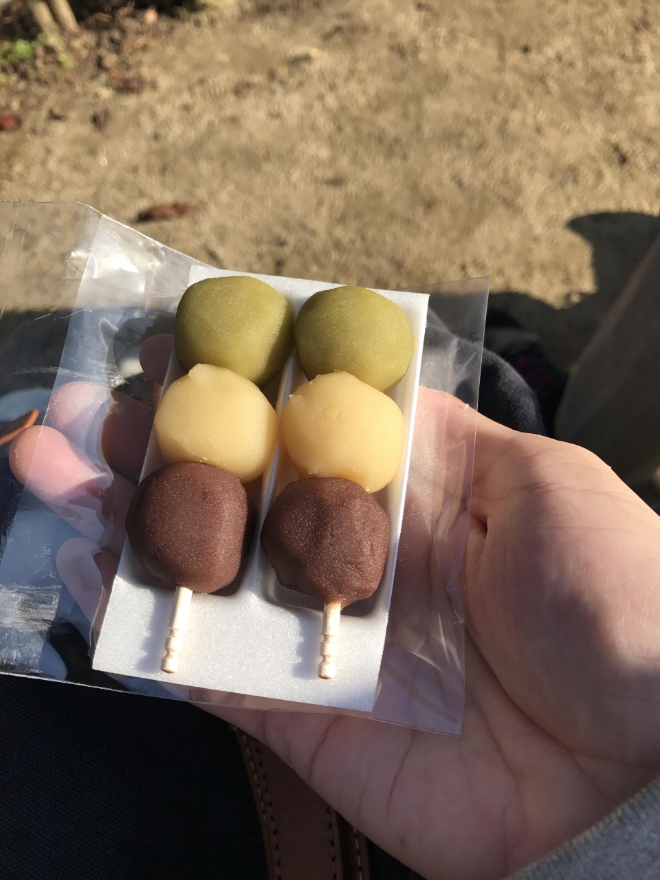坊ちゃん団子を職場用、自分用、いますぐ食べる用と購入し、道後公園で頂きました。