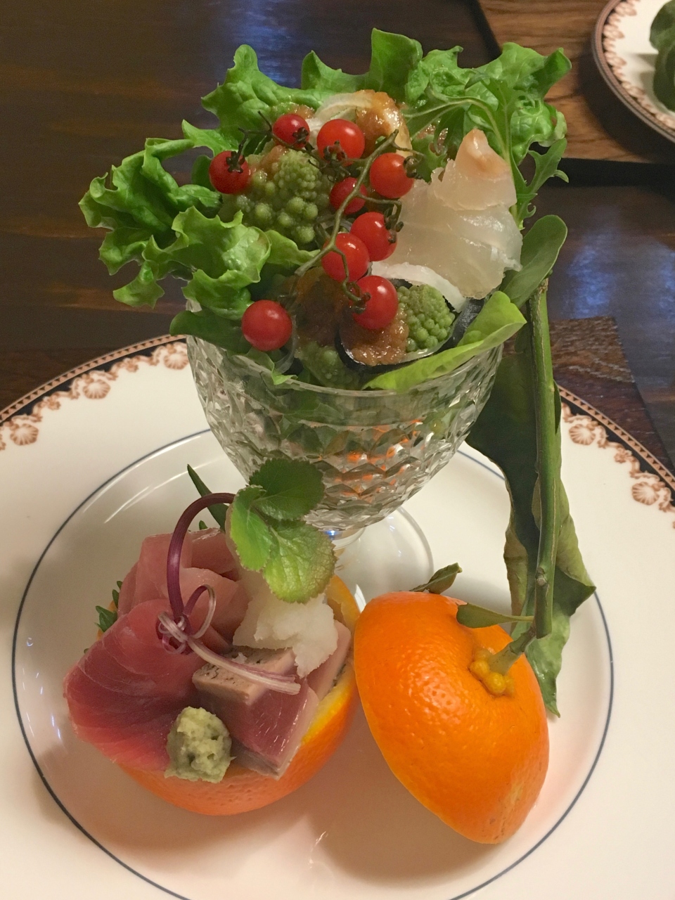 ランチ時に利用、コース料理を頂きまして、お通し(鰻の骨せんべいとナッツ&ベリー)、サラダとお造り(ミニトマトとほうれん草とカリフラワーとレタス、サーモン、マグロのたたきなど)、白焼きと鰻の尾を焼いたもの(塩と三杯酢が添えられている)、お重...全てが絶品!
