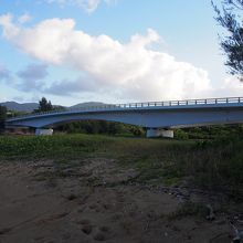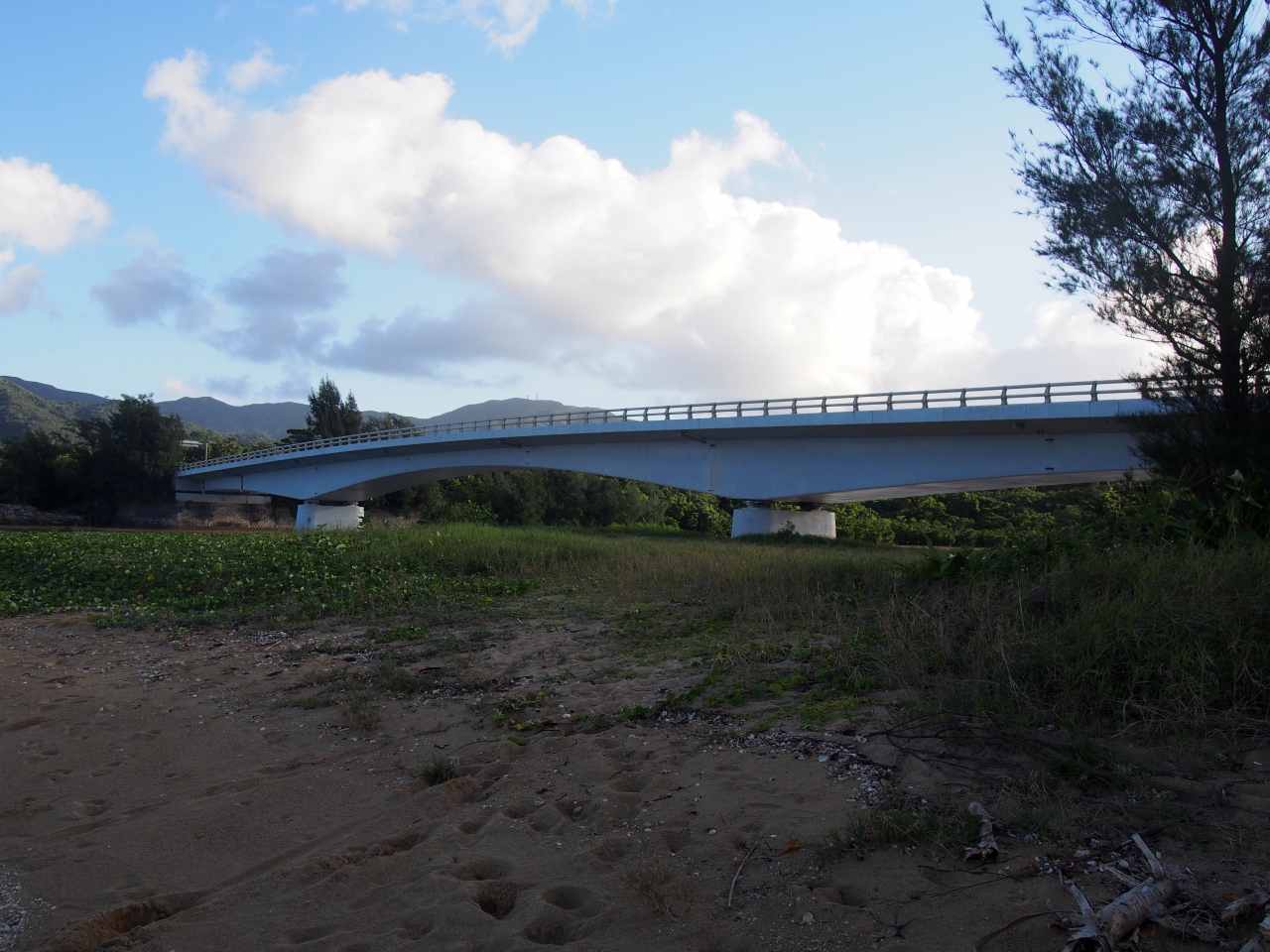 名蔵大橋は名蔵湾と名蔵アンパル湿地帯との間にある橋です。名蔵湾の海水と名蔵アンパルに流れ込む川の真水が混ざる汽水域の場所が名蔵アンパルです。名蔵アンパルは汽水域らしい植生(マングローブなど)がみられます。名蔵大橋のたもとに車を止めて、橋の下の方に降りていきましたが、ちょうど干潮の時間帯で大橋の下には水はほとんどなかったです。満潮になると海から名蔵大橋の下を通り名蔵アンパルに流れ込むのだと思います。