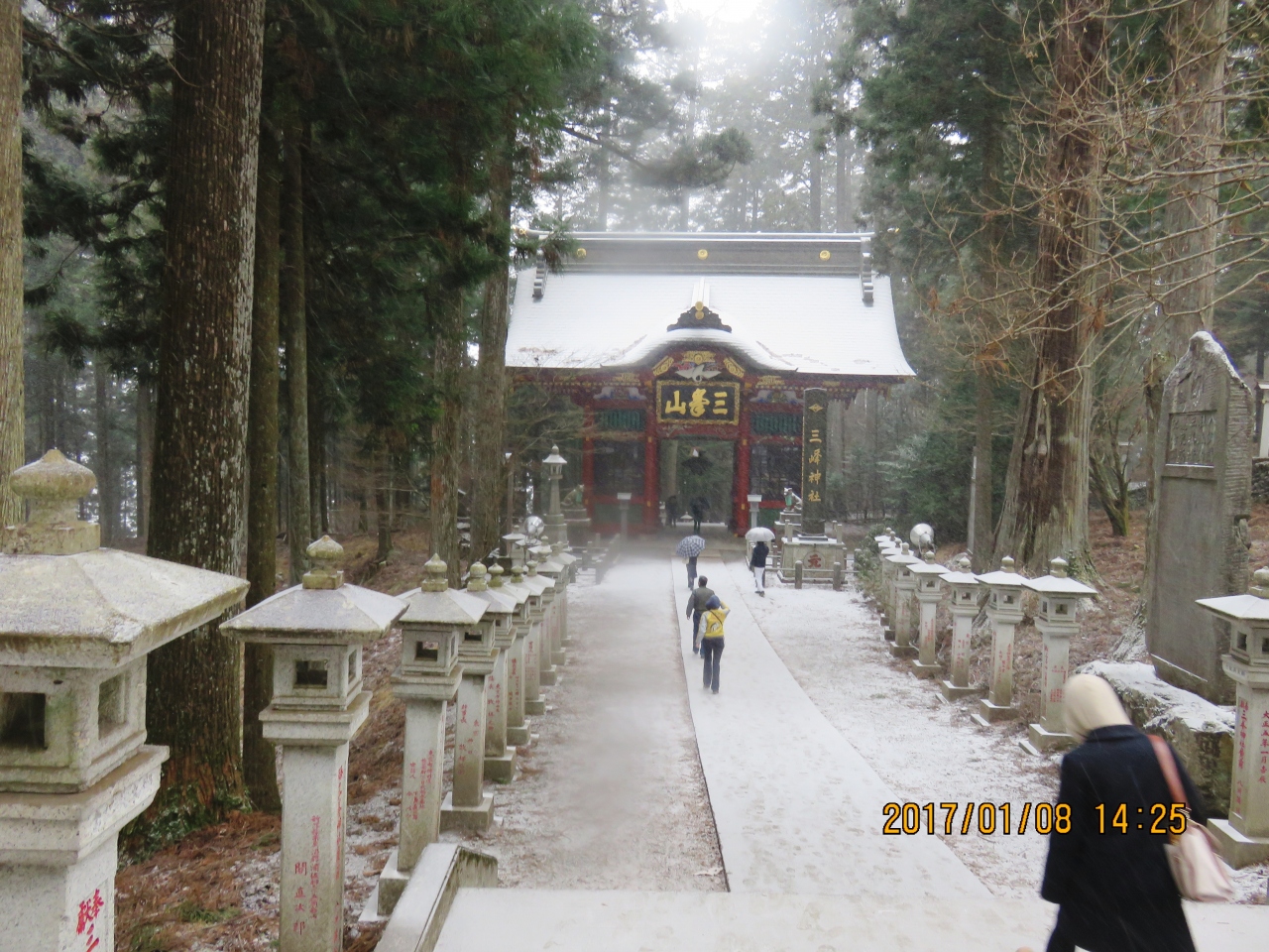 初めてでしたが行ってみようと決意し午後から行きました。80㎞の道のりです。ダムの上を走り山道に入るとどんどん上ります。結構交通量がありました。駐車場普通車510円 駐車場から15分の看板があり上っていくと珍しい三つくっついた鳥居です。さらに上っていくとて立派なきれいな門があり少し下ってから階段を上ると本殿です。前にご神木がそびえたっています。ゆっくり隅々見たかったのですが次回天気のいい時にまた来たいと思います。霧があったほうが幻想的でいいらしいですが。お守りは大人気です。