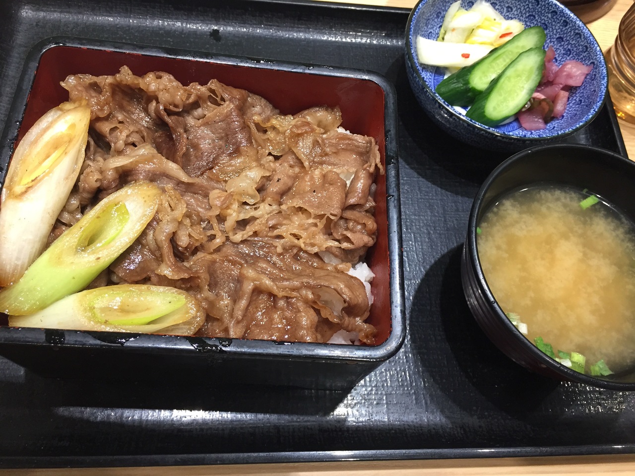 羽田空港国際線ターミナルは高いお店が多いのですが、そんな中でも街中の吉野家より少し高い程度の値段で牛丼を提供しています。