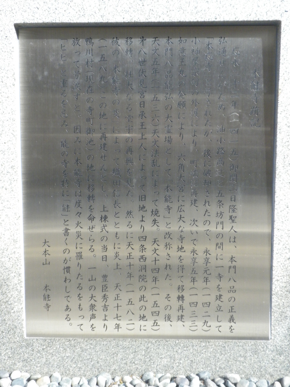 いつかまたチャリを転がして他の本能寺跡の碑もカメラに収めて来たいと反省しています。