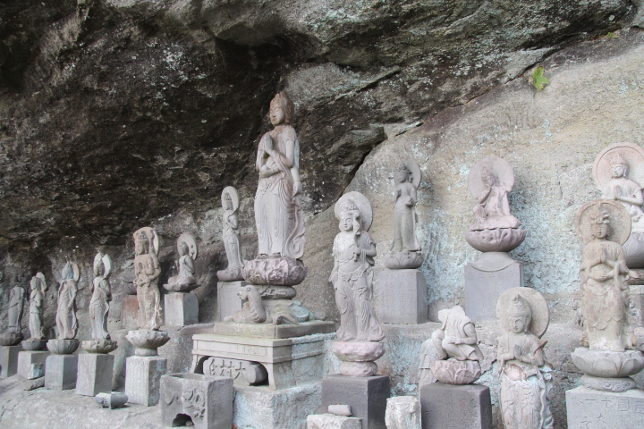 鋸山日本寺境内の大仏口管理所辺りから山頂展望台にかけて奇岩霊洞の間に1553体もの石仏が安置されています。こちらも険しい道のりですが、大仏広場から一直線で登る心臓破りのとても長い階段に比べれば楽な方なのでこちらのルートを登ることをお勧めします。