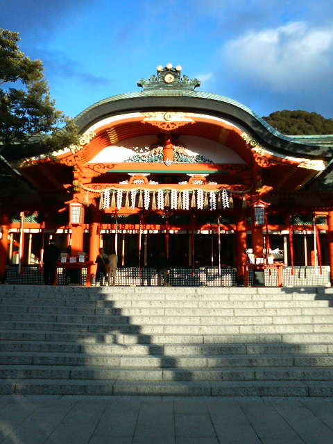 手前に屋根がせり出した形が特徴的で(「流造り」という様式だそうです)、鮮やかな色合いや軒下の豪華な彫刻など隅々まで見ごたえのあるつくりとなっていました。