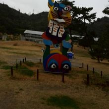黄色かぼちゃは大人気スポットだけど、瀬戸芸が終わったこの1月、天気は雨、寒い、の三拍子がそろったおかげでガラ空きでした。存分に写真を撮ってかぼちゃとたわむれることができました。すぐ近くに他の屋外展示の作品もたくさんあり、自然とアートを楽しむことができました。
