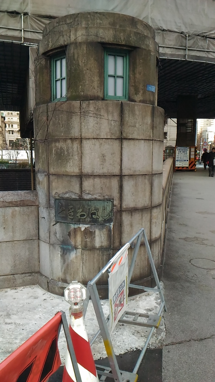 JR東京駅から徒歩5分くらいでしょうか。日本橋川に架かる橋ですが、本来なら歴史の重みをもっと感じ取れるのでしょうが、周辺の改修工事が行われており、工事標識が目立ってしまい何か残念な状況になっていました。しばらく工事は続きそうな感じでしたが。橋好きの方は是非。