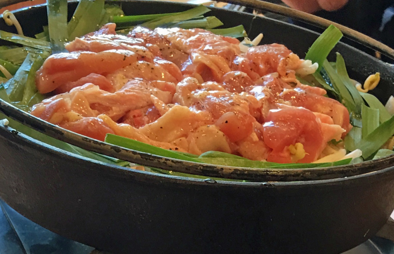 2時間飲み放題付きの楽コースです。メインの自家製塩だれの鶏ちゃん焼の鍋に火をつけておいて、冷や奴、枝豆、塩キャベツをおつまみにどんどんビールを飲みました。その後からも魅力的な料理が続き、ついつい飲み過ぎました。