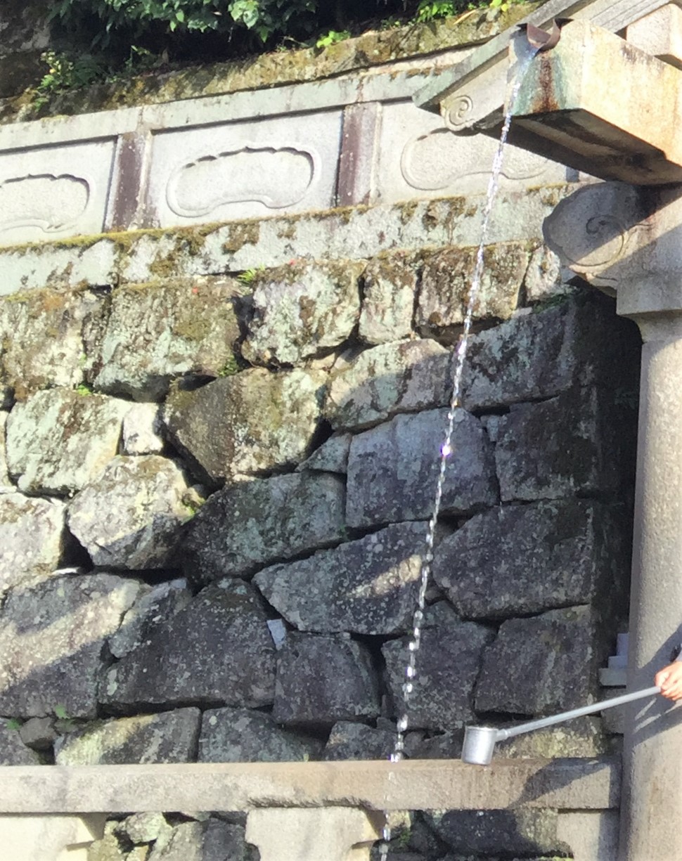 音羽山から下りてきた地下水が3本の筧を伝って滝壺に落ちています。