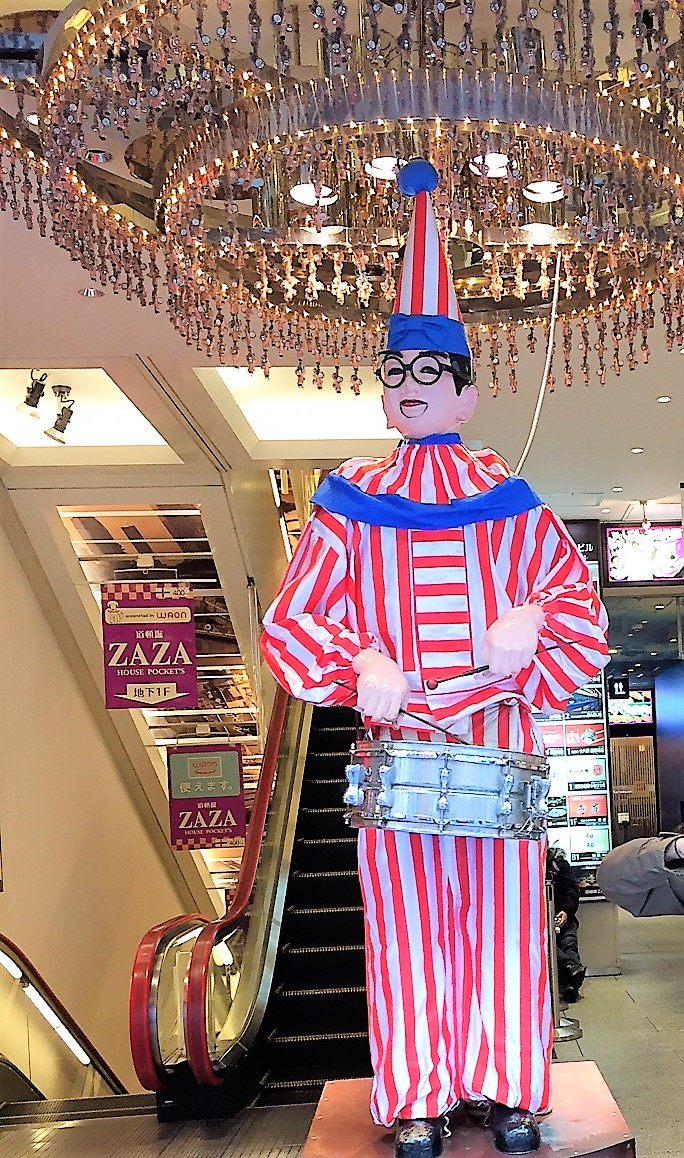 くいだおれ太郎がビルの入り口で