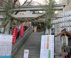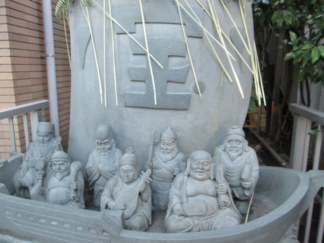 大法寺より童謡「赤い靴」の主人公きみチャン像を通って徒歩13分で十番稲荷神社に到着。石段下に宝船がありました。宝船の上に七福神が乗っています。都内の七福神巡りで宝船のあるのはここだけだそうです。石段を登ると本殿がある、ビルに囲まれた小さく、こじんまりとした神社でした。ここも人が少ないせいか、都会の中にしては静寂さを感じました。御朱印を頂きました
