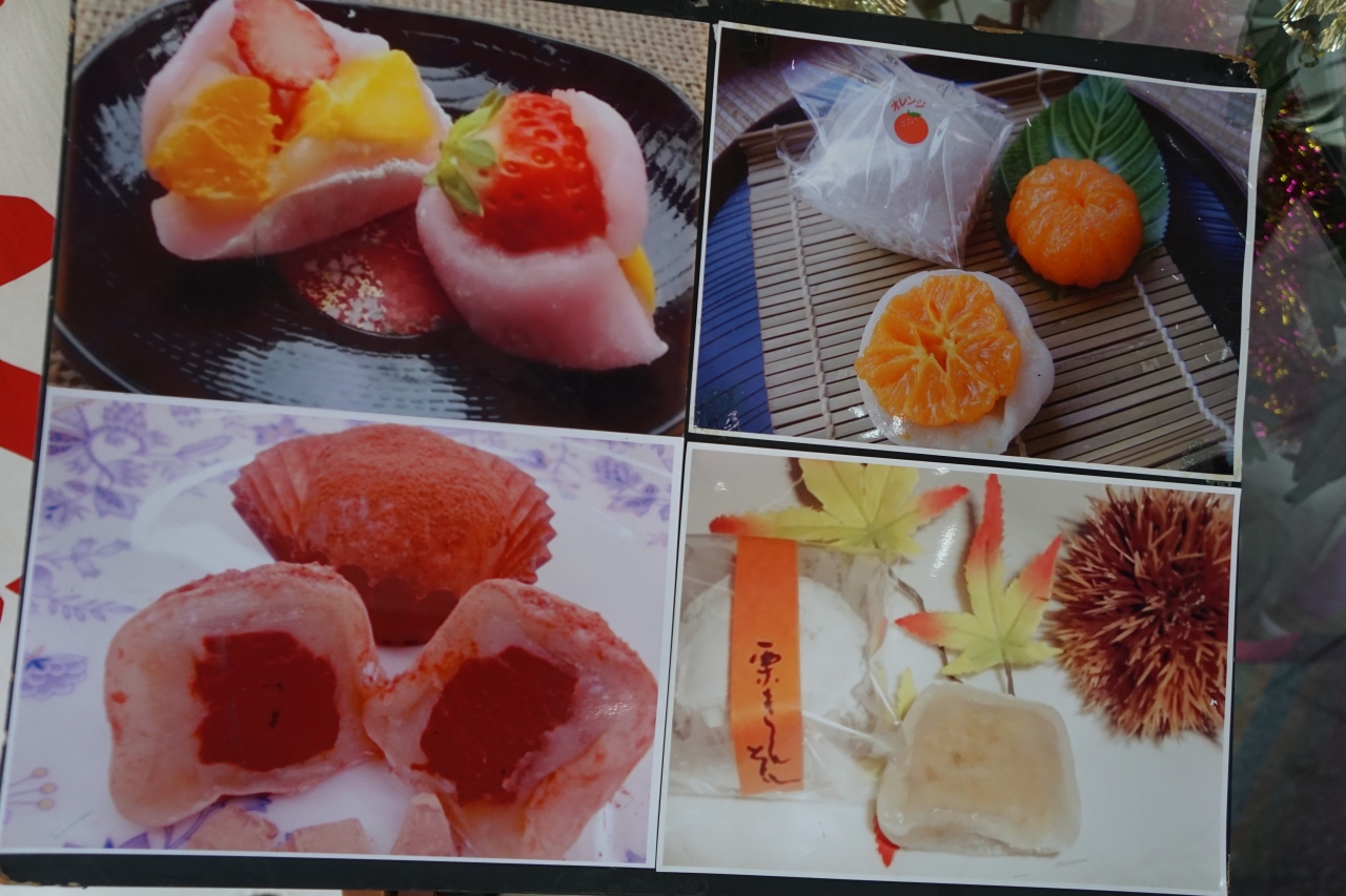 一力菓子は、熱田神宮前の商店街。ちょっとひなびた商店街なんですが、ここのフルーツ大福すごいです。いちご大福みたいな定番を始めとして種類は豊富だし、一つ一つの写真がパネル展示されていてとっても美しいですね。いただいたのは、いくつかのフルーツを組み合わせたタイプでしたが、姿も味もちゃんとまとまりがある。見た目だけではないことも忘れず付しておきたいと思います。