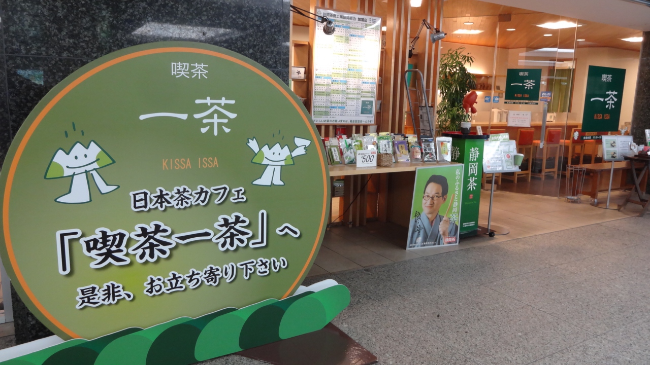 JR静岡駅北口の地下にある静岡茶のアンテナショップです。「静岡茶商工業協同組合」が運営しています。ワンコイン(500円)で静岡茶を販売するコーナーやお茶の情報コーナーが脇にありました。ガラス張りの狭いコーナーですが、カウンターとテーブル席があり、店内では日本茶インストラクターがお茶の入れ方などアドバイスしてくれます。お茶セット(お菓子付)500円でした。香りが抜群でした。隣は「タミヤ」のギャラリーでした。