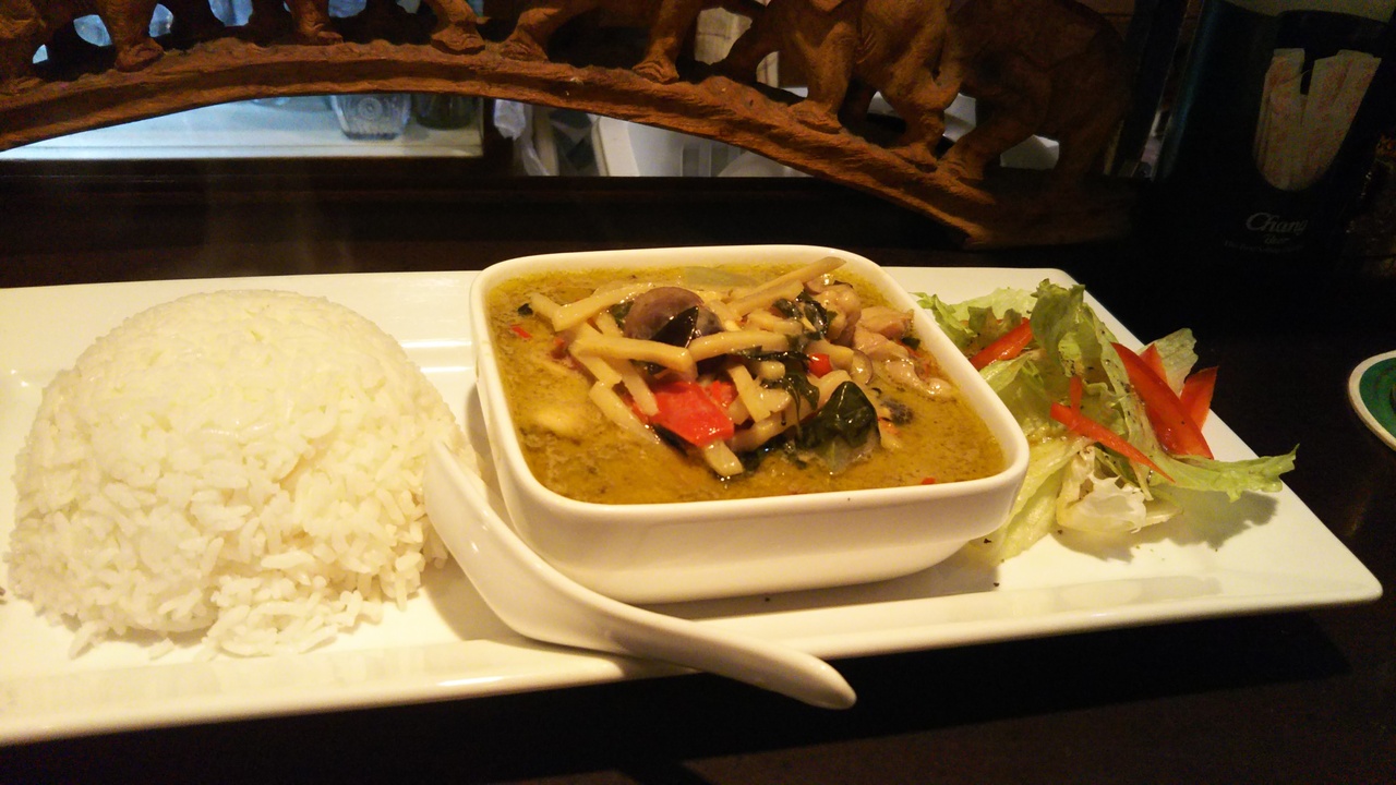 鶏肉の炒め物もグリーンカレーも、それほどガツンとくる辛さはありませんが、後から余韻のように辛さが広がって、とても美味しかったです。