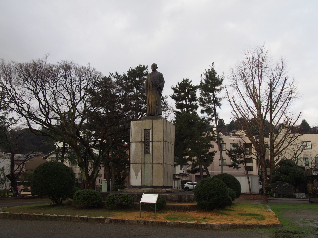 左内公園は福井駅から足羽川を渡ったすぐにある公園です。公園は住宅街の中にあるよくある公園ですが、公園の一角に橋本左内の像が建っています。像は台座も入れると5mは超えるような大きな像です。橋本左内については詳しくなかったので、横にある詳しい説明板がありよかったです。