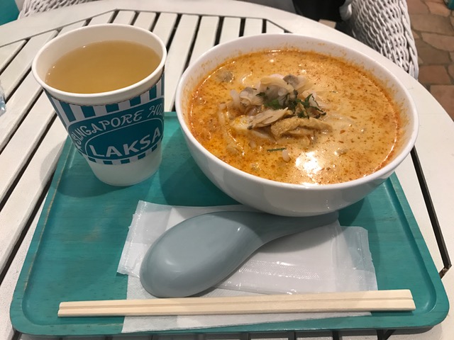 今回はラクサ単品M(800円)、あさりのトッピング(100円)、ホットグリーンティー(350円)、合計1,250円