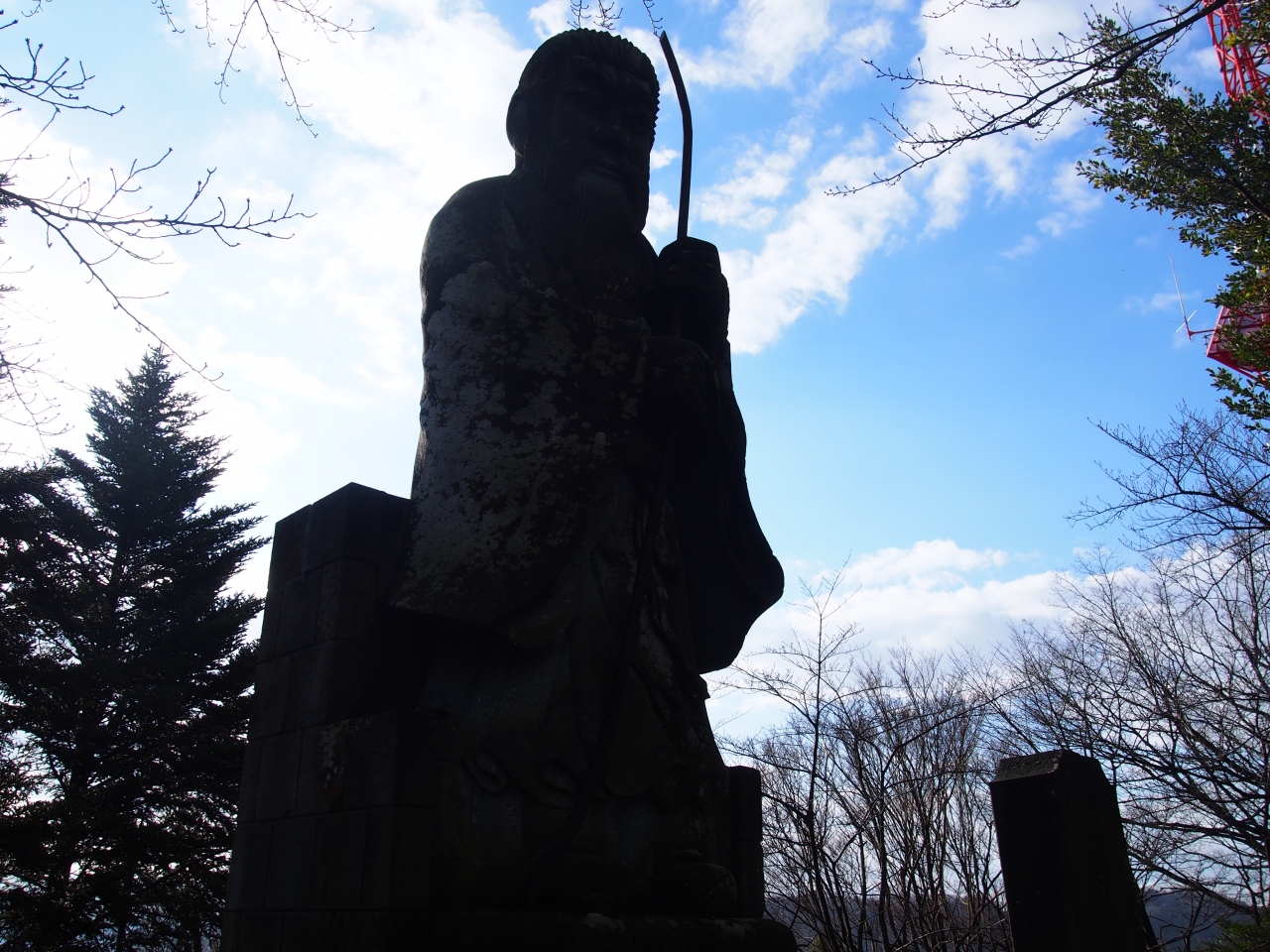 足羽山の山頂付近に継体天皇の像があります。3mほど大きさの像ですが、ちょっとデフォルメされた像です。午前中に訪れる逆光になり、写真は黒く映ってしまいます。継体天皇は京の都で天皇の系統が途絶えたときに、かなり血縁のうすい福井のいた高齢の継体天皇が天皇としてついたという謎のある話があります。