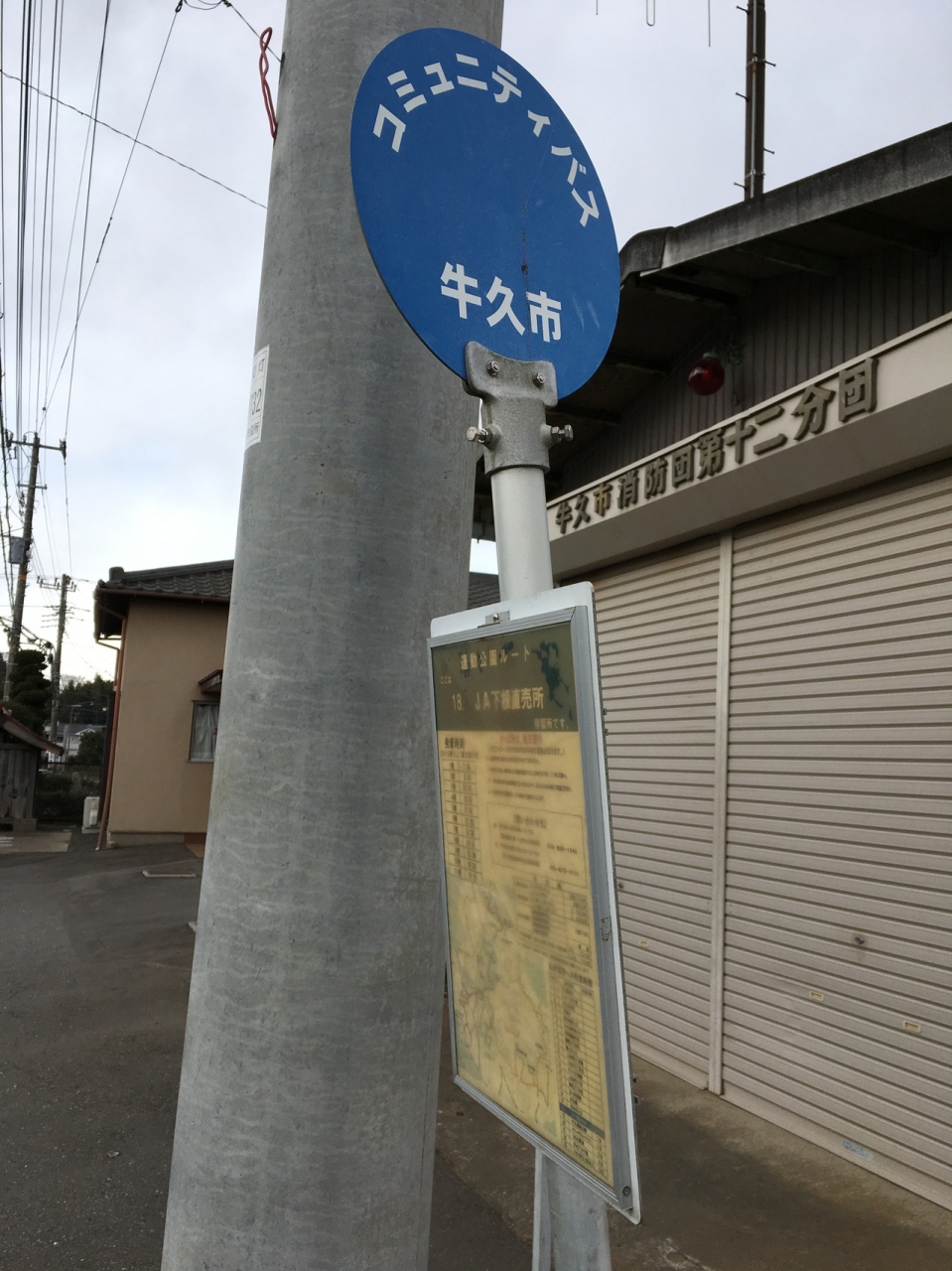 大人100円小人50円の市内循環コミュニティバスで日中5ルート、通勤時間帯は追加2ルートがあってすべてが牛久駅を経由するコースです。住宅街の中の細路地を走るので生活している街であっても車窓の風景が新鮮に感じられました。