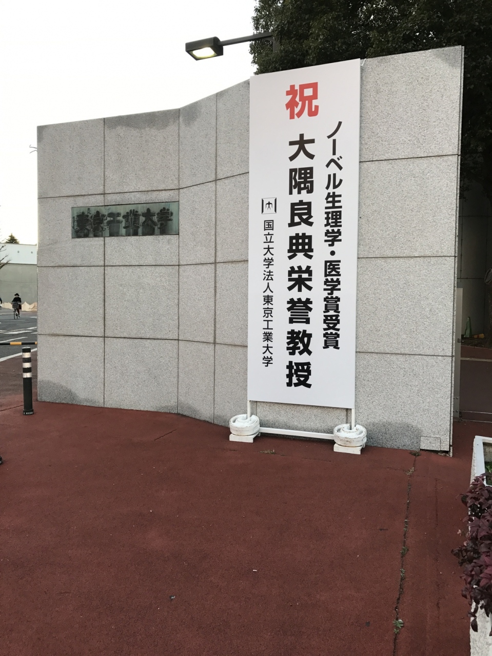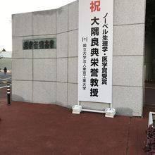 キャンパスが広く、綺麗な大学です。栄誉教授の大隈良典先生が、ノーベル賞受賞後だったので、お祝いムードでした。休日に行きましたが学生だけでなく、近所の子ども達の遊び場にもなっており、サッカーをしたり、自転車の練習をしたりしている姿が見られました。ちょっとしたお散歩によいな~と、見学させてもらいました。ただ、イチョウの木が沢山あり、銀杏が落ちて臭いが…。