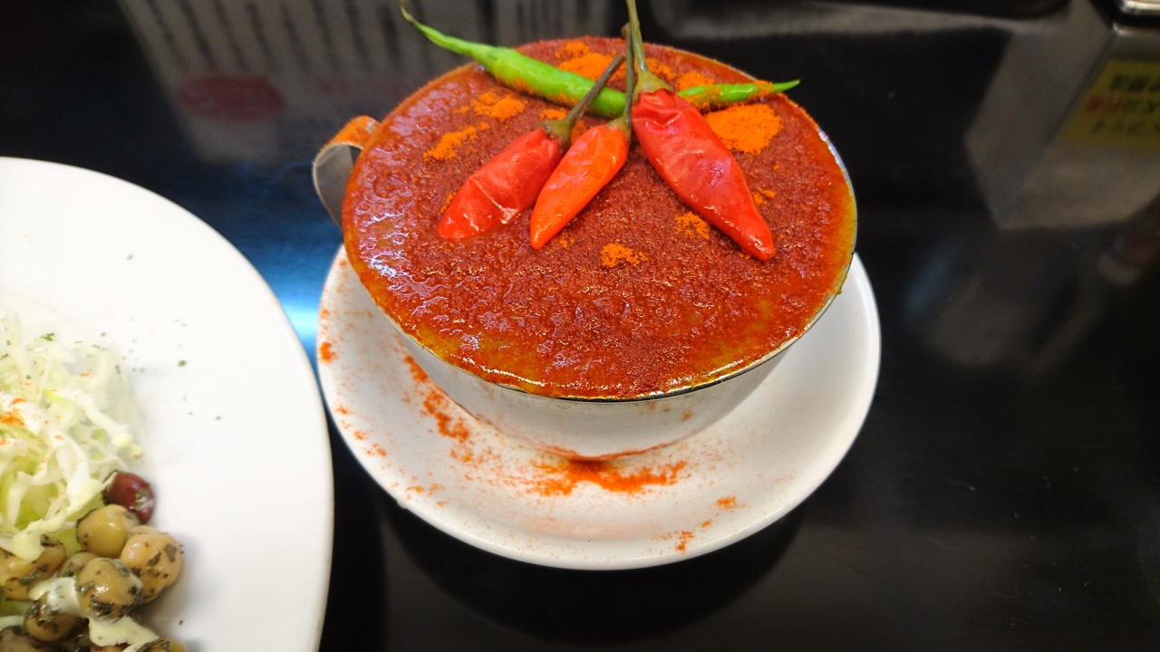 秋葉原駅から昭和通り沿いに徒歩で5分程。お昼時は混みますが、時間をずらせば、座れます。まず、入口の券売機でチケットを購入。着席後チケットを渡し待つこと数分、付け合わせは何にしますかと聞かれるので、店内に掲示されている10種類ほどの中から、3種類を選ぶ。店名からすると、サラサラカレーをイメージするが、実際は、少し欧州チックな味のするドロカレー。そんなにスパイシー感は無い。今回食べたのは、激辛カレー。食後から、お腹のあたりの違和感と翌朝まで腹痛に悩まされたが、辛いもの好きにはたまらないでしょう。普通のカレーがメインなので、そちらは、全く辛くなく、普通に美味しいです。量も結構あるのでお客さんは、ほぼ男性です。