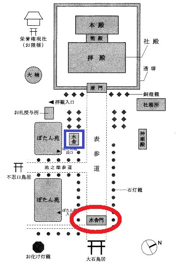 水舎門の先には、ぼたん苑があります。