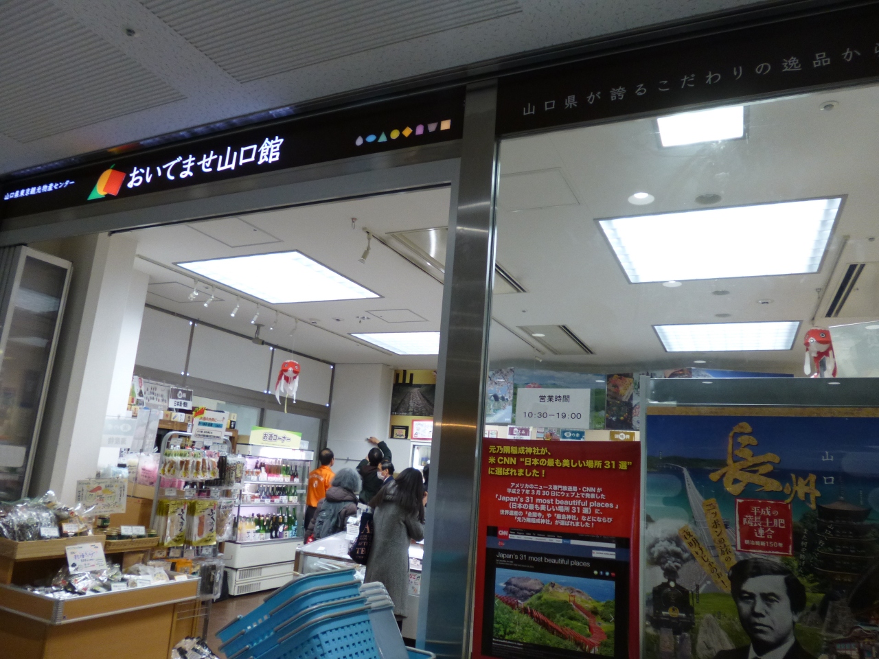 日本橋の丸善の近く、日本橋プラザの1階にあります。おにぎりにするとおいしい、しそわかめをここで購入しています。海の幸の豊富な山口県ですが、夏ミカンを使ったお菓子や、特産の橙で造られたポン酢なども、人気があるようでした。