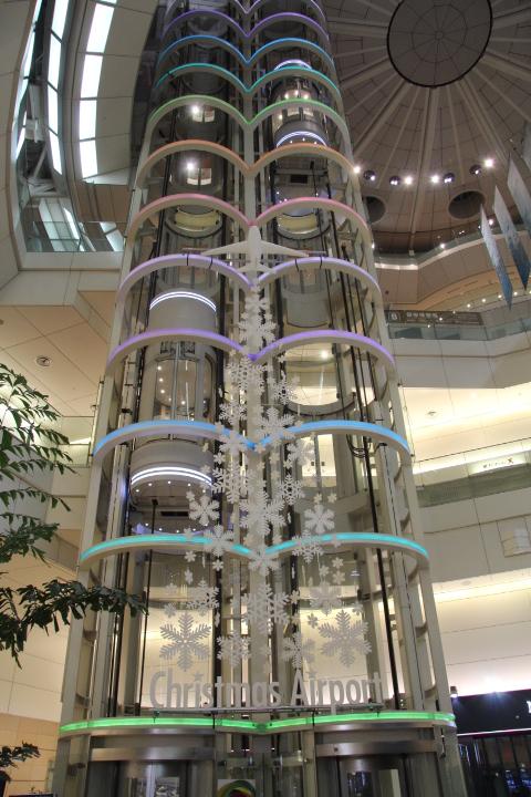 「flight to you.あなたのもとへ。」をテーマにしたクリスマス装飾が施されていました。吹き抜けのエレベーターにクリスマスツリーの柄やウインタースポーツの飾りでデコレーションされたクリスマスツリーなどターミナルはクリスマスモード満載で明るかったです。