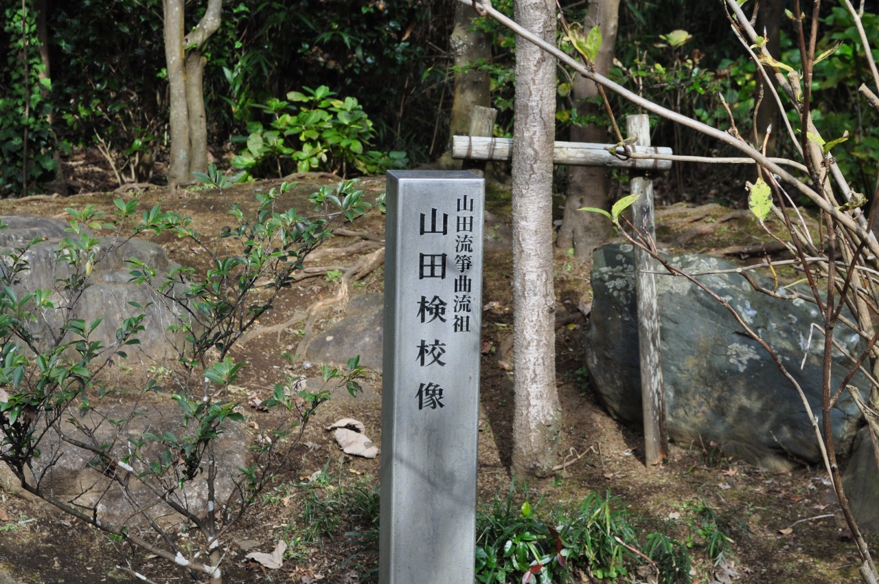 奥津宮のすぐ右隣りにありました。江の島にはいくつか人物をたたえる史跡があるのですが、山田検校銅像は(おそらく)唯一の銅像がある史跡になります。残念だったのは立派な銅像の割には説明がほとんどなく、どのような方なのか現場ではほとんど理解ができませんでした。「山田流箏曲流祖」と書かれていましたのでのちに調べたところ、箏曲とは琴を指すんですね。せっかくこのように史跡の残すのであれば、もう少し丁寧な案内板も設置してくれればいいのにと思いました。