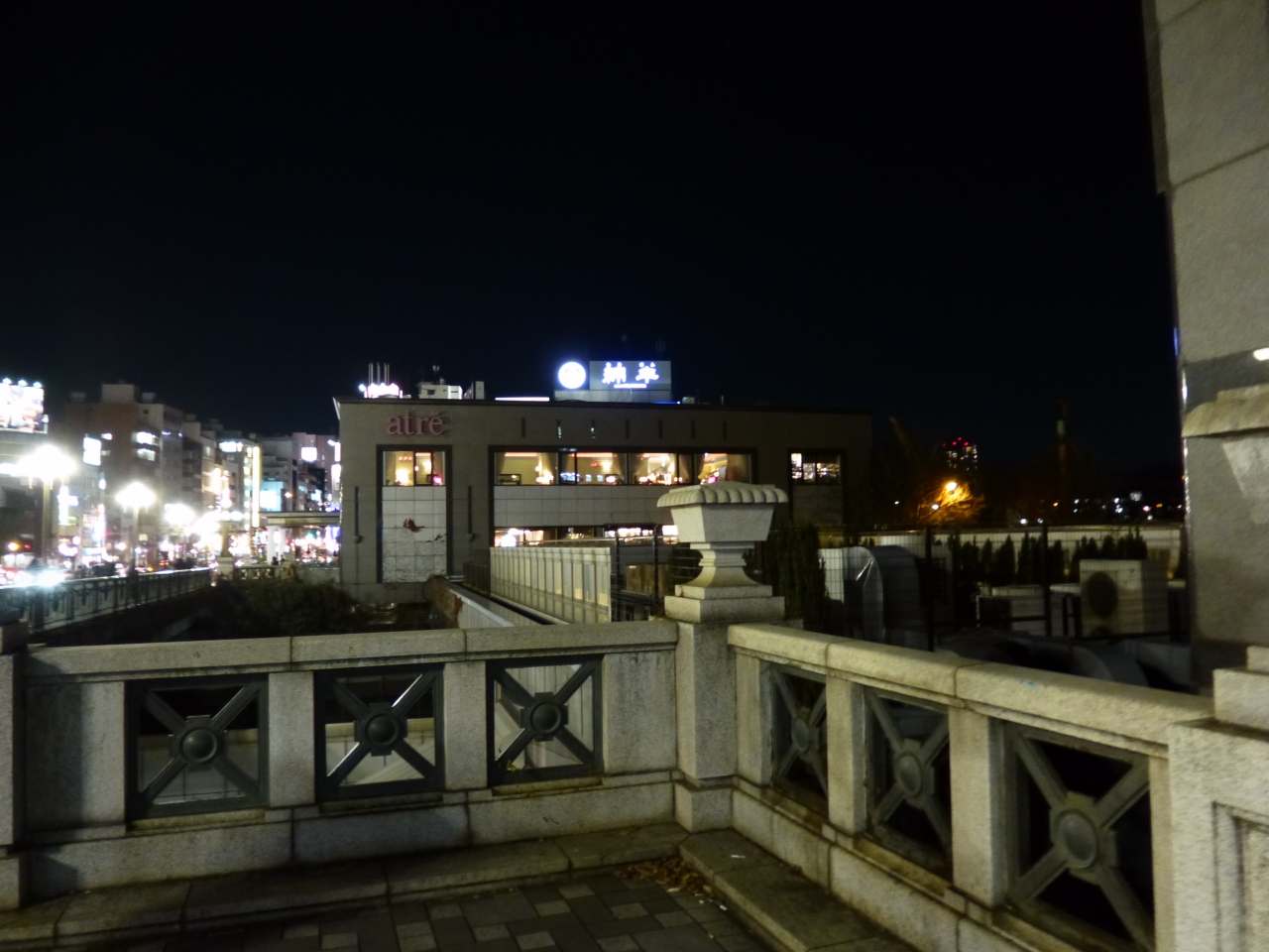四ツ谷駅近くのレストランで夕食をする予定があり、四ツ谷見附橋を渡りました。橋自体には照明が当たらず、その向こうから新宿通りの光が差し込んできます。夜の光景は昼とは全く異なる趣があります。夜の方が、より橋の歴史を実感するように思えました。