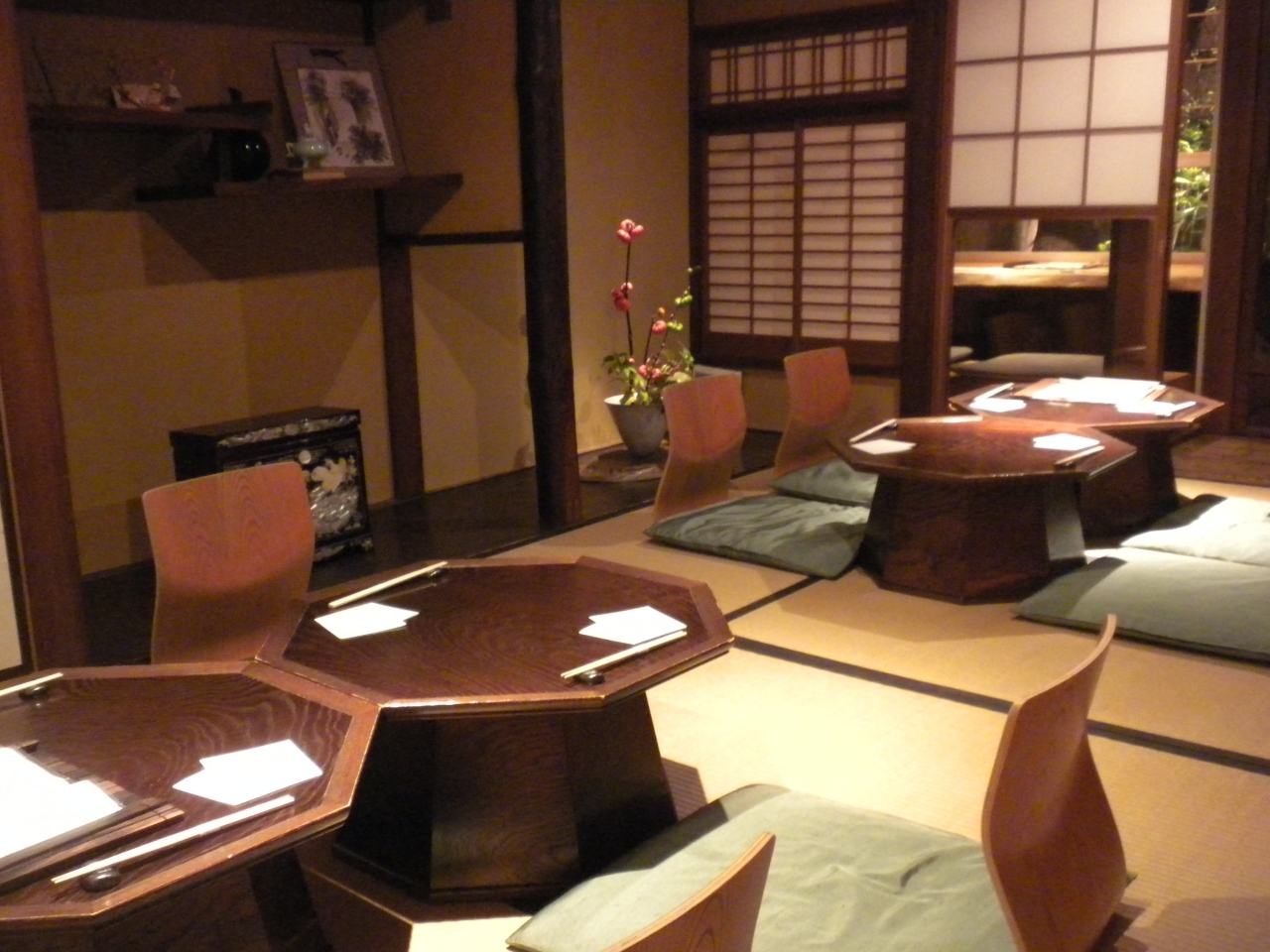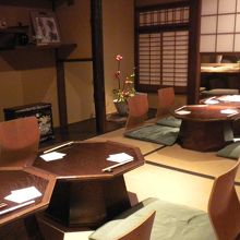 - カウンター席もありますが畳敷きに座卓が主です。風情ある造りだと思います。