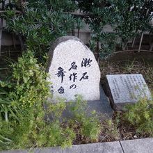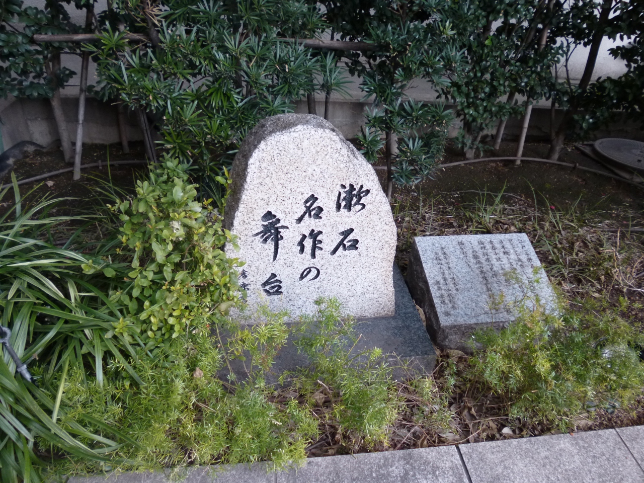 「漱石名作の舞台の碑」は、日本橋の裏通り、コレド日本橋のすぐ脇に建つ史跡です。「名水白木屋の井戸」と並ぶように位置します。1月という事で、周囲の緑はやや勢いをなくし、手入れが不十分と思われ、歴史を語る史跡としてはやや中途半端な光景でした。