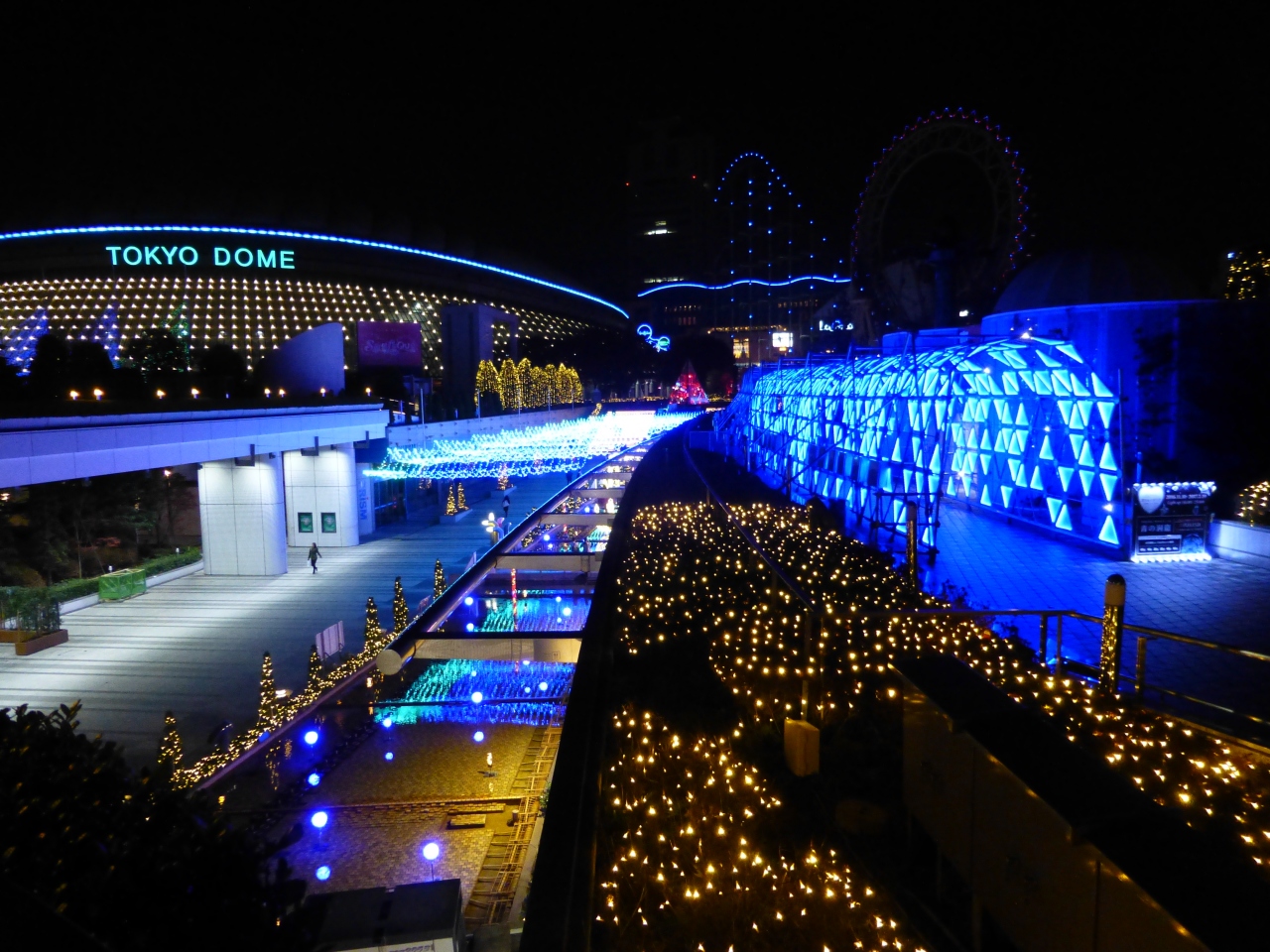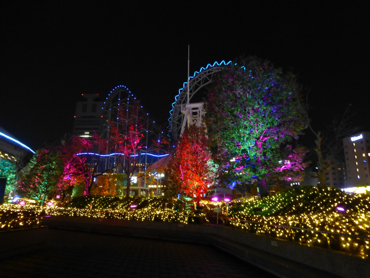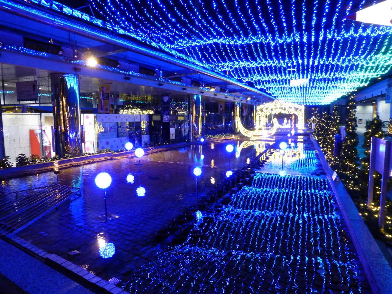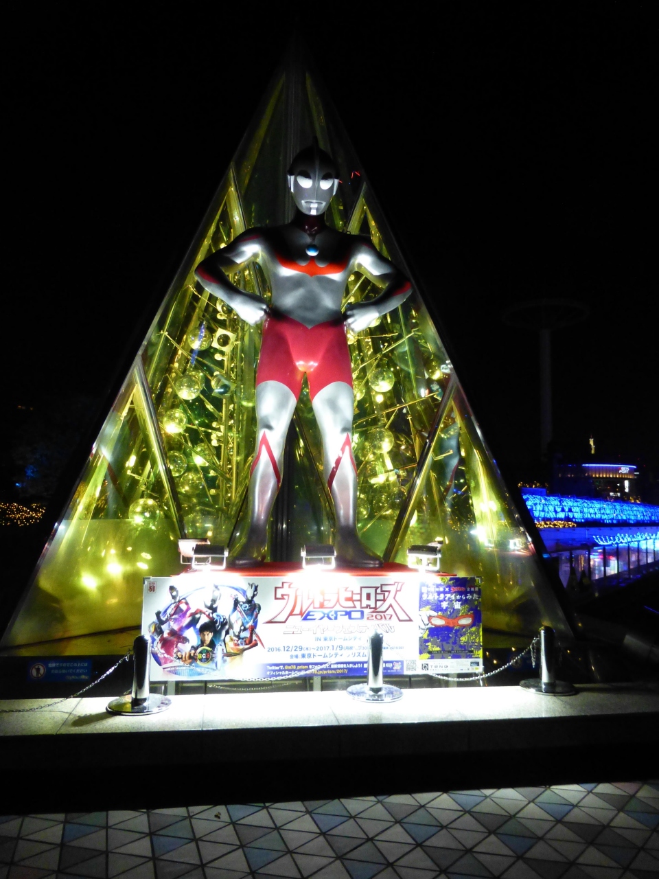 ほかのところのイルミネーションは22-23時までが多いですが,夜24時まで点灯しているということで,ここに来てみました.今年はイタリアをテーマにしたイルミネーションとなっていて,「ロミオとジュリエット」や「青の洞窟」,「ベネチアのゴンドラ」などをもちーるにしています.また,ウルトラマンの立像もありました.並木もきれいにイルミネーションされていて,きれいでした.なお,24時までいると地下鉄の終電・接続する乗り換えに乗り遅れます.