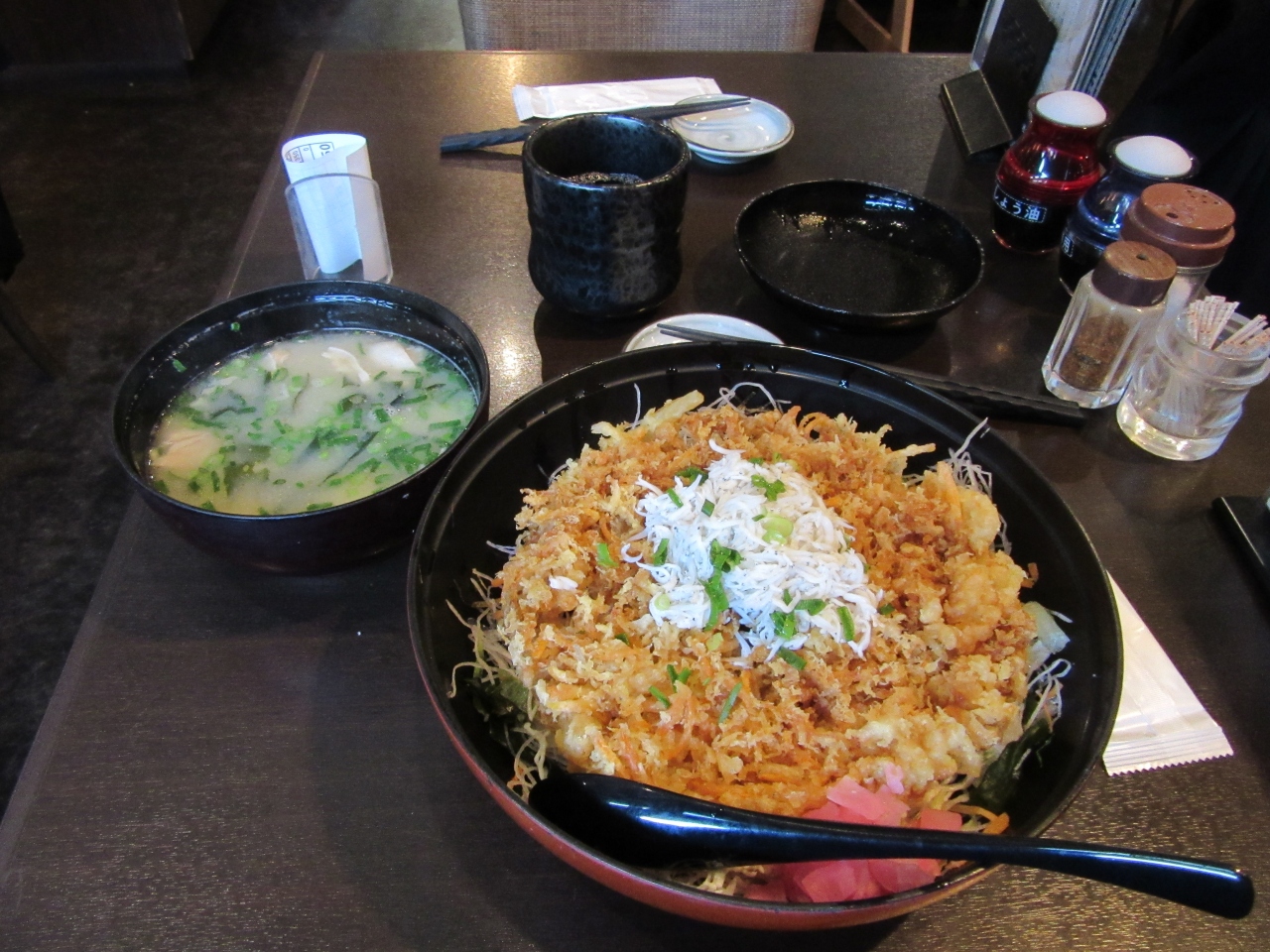 今回は「しらすかき揚げ丼1枚」\950-也と「魚のあら汁」\400-也