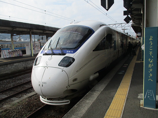 さてさて。現在の特急かもめはこれ。885系を用いた『白いかもめ』が主力です。どことなくドイツのICEに似てるような気も。流線型なのに、どこか卵ちっくで可愛らしさも感じる車両です。