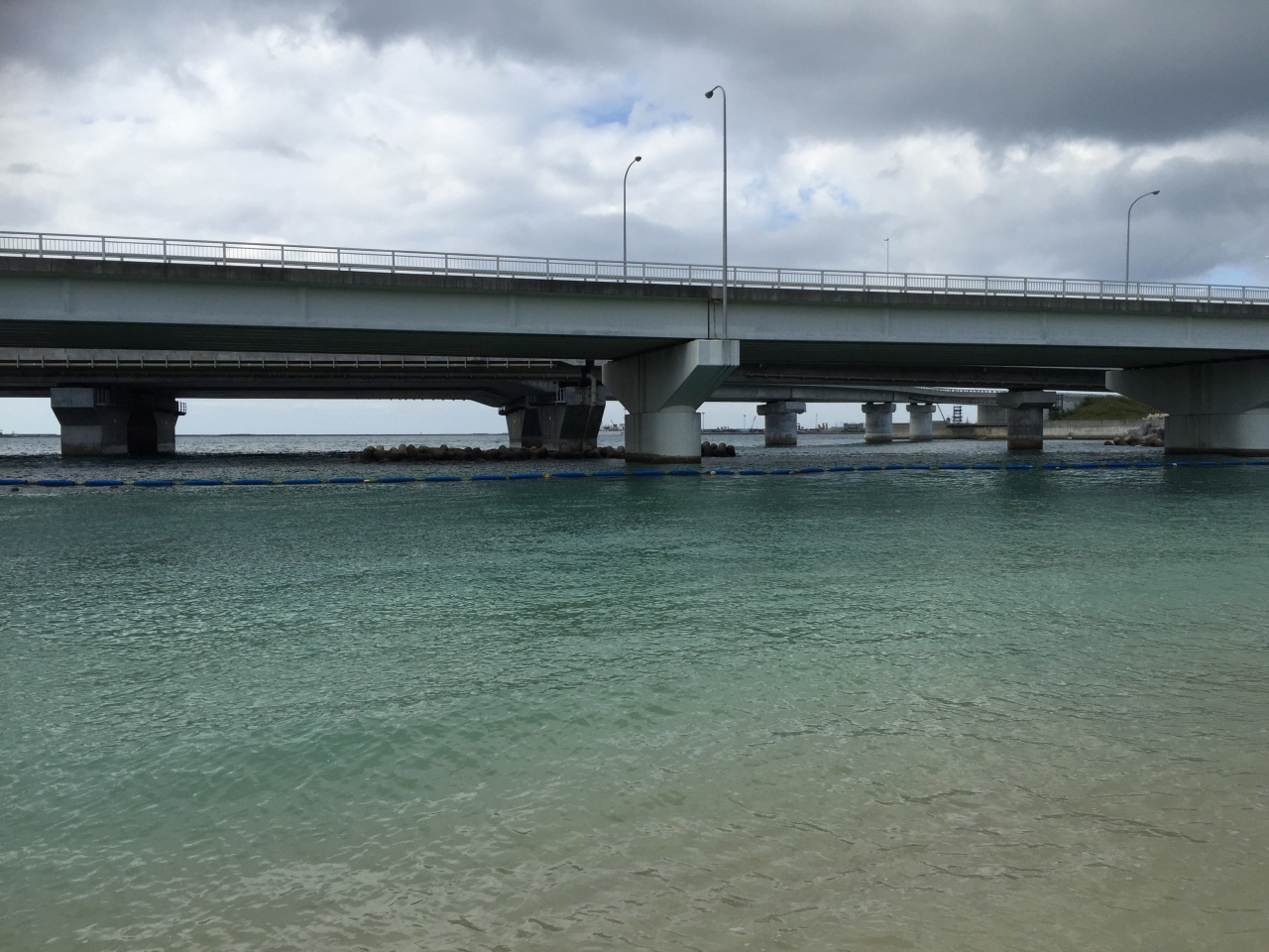 波上宮に行ったついでに泳いでこようかと、水着持参で行きましたが、目の前は高速、泳げるエリアも限られていて(ロープで囲ってある)、他のキレイなビーチを知ってしまったあとでは、とても泳ぐ気にはなれませんでした。