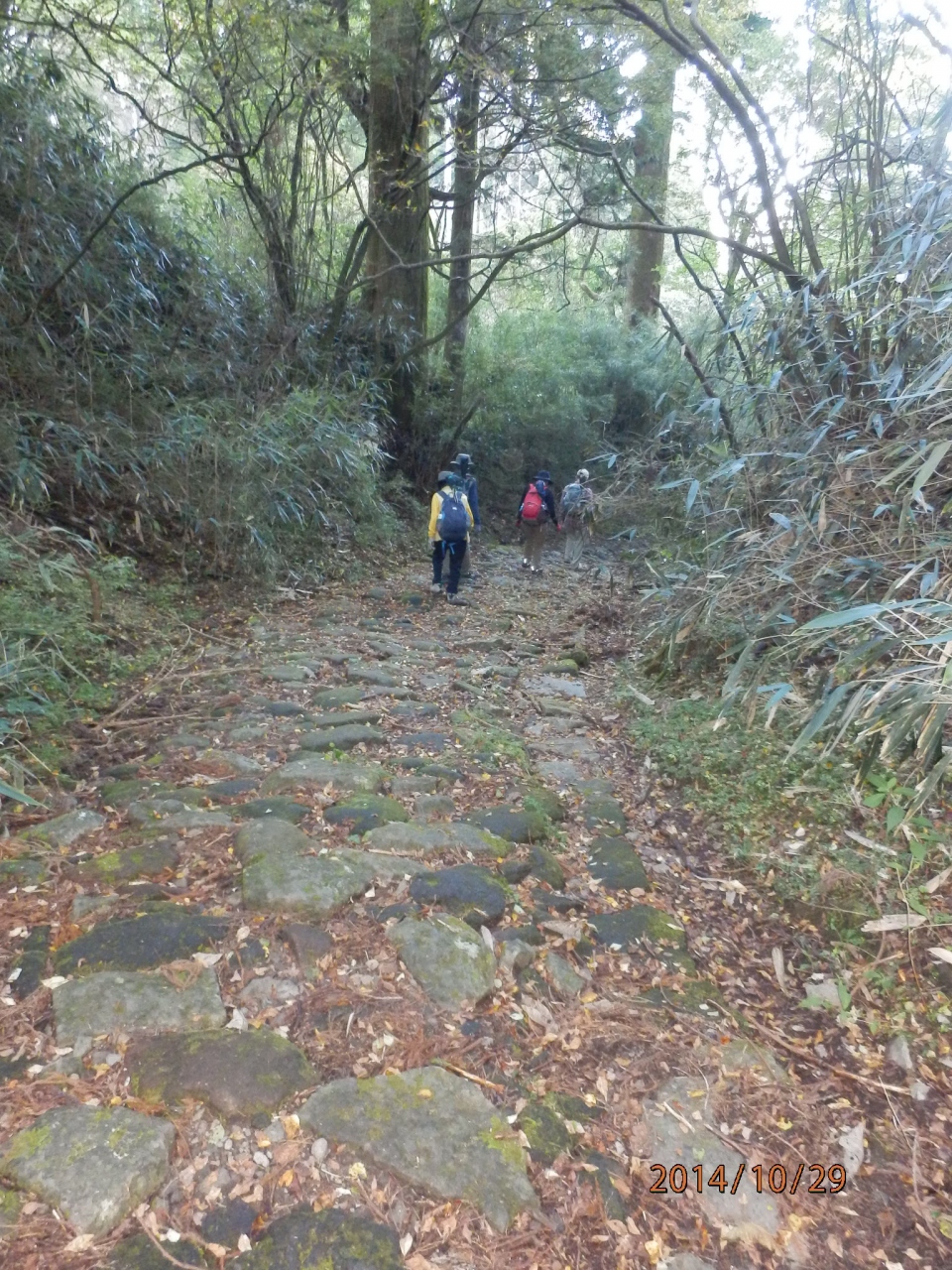 小田原駅で箱根フリーパスを購入し、箱根登山鉄道、ケーブル、箱根ロープウエイを乗り継いで桃源台に着きました。湖尻まで下り、芦ノ湖を反時計回りに進む。苔むした石畳の急登り、ブナ林浴、富士山の眺望等を楽しみながら、2時間強三国山頂上(1102M)に到着。昼食後下山。落ち葉を踏みしめて歩く「カサカサ」という音はなんとも言えません。またリンドウ、マツムシソウ等が多く咲いており目を楽しませてくれます。歩き始めて5時間40分バス停に到着。バスで元箱根港に行き、後遊覧船で桃源台へ、ロープウエイ、箱根登山ケーブル、箱根登山鉄道を乗り継いで帰宅。本日のコースは標高差360Mほどで、ガレ場もなく歩き易かったですが、時間が5時間40分と少し長かった。山歩きに加え富士山眺望、箱根旧道の石畳歩き、さらにロープウエイで大涌谷を見下ろす、海賊船で芦ノ湖を渡る、観紅葉等話題の豊富なコースでした