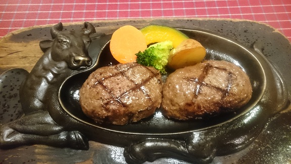 鉄板に乗せてテーブルまで運んで、そこで半分に切ってジュジュー!