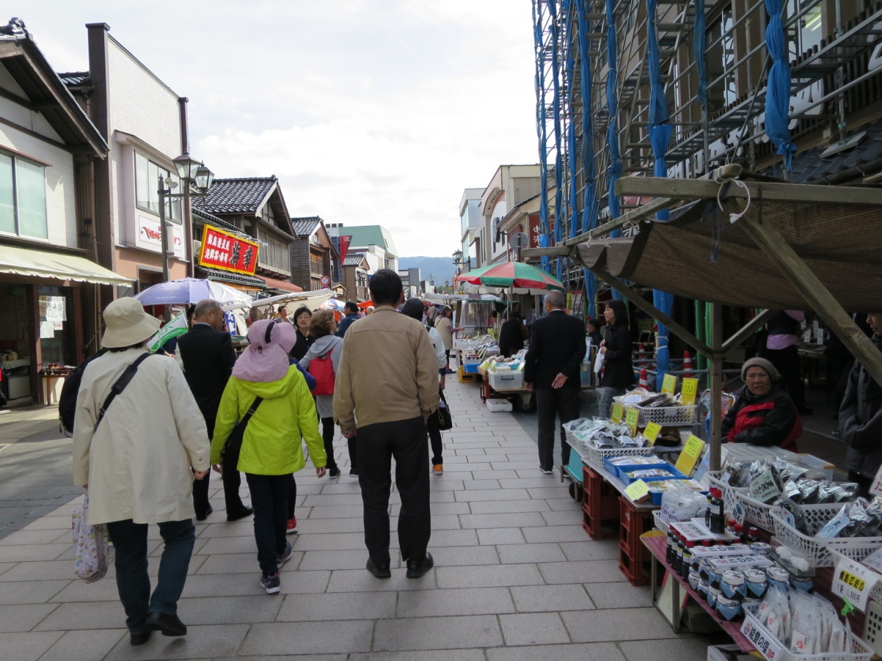 金沢・能登観光の代表スポット「輪島の朝市(お土産の海産物の購入目的)」へは、定期観光バスを利用し訪れました、目的の海産物の購入は、値段・品揃え共に満足しました。朝市は、お昼で閉まりますので、訪問時間を注意しなければなりませんネ、買い物の後は、近くのお店で昼食をいただきたいです。