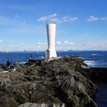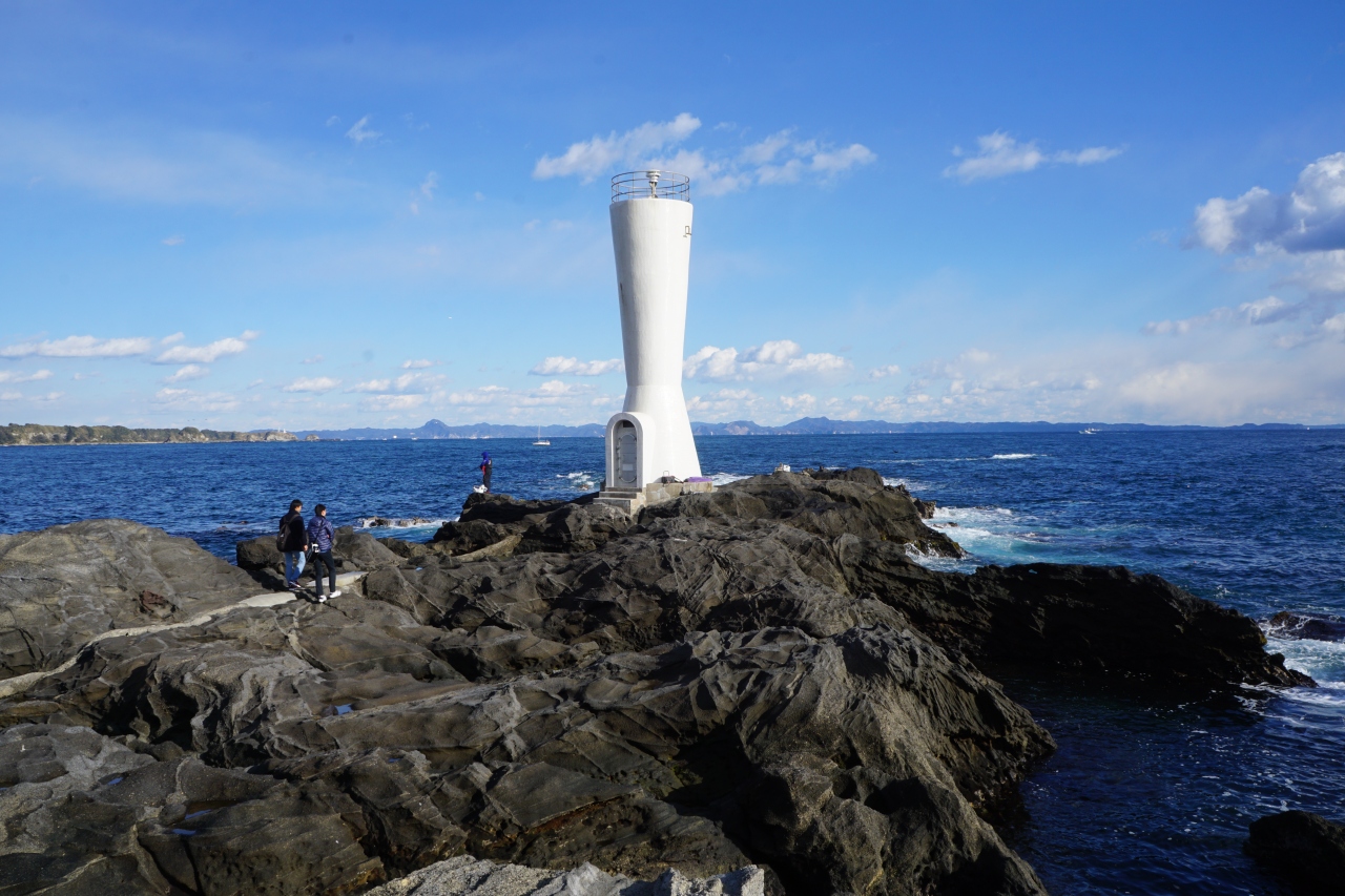 安房崎は、城ケ島公園の一番奥。高台の芝生広場からしばらく石段を降りると波が打ち寄せる岩場に降りていくことができます。小さいですが安房灯台が美しいし、海を隔てて、剣崎灯台の方も見渡せる。東京湾の出口にあたる場所となりますが、ここからの眺めはなかなかの絶景かと思います。