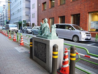 「尾台榕堂之碑」は東京駅八重洲中央口から京橋方面へ行き最初の信号を右折し直ぐの場所に建てられています。尾台榕堂って聞いた事も有りませんが、徳川家茂の侍医を務めた事も有る漢方の名医で幕末に活躍した人だそうです。容堂がこの地に住んでいた事から立てられた碑で子供達を診察してる姿が彫られています。