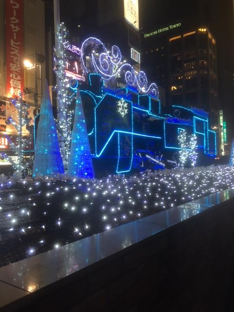 いつも見栄えの変わらぬ空気のような存在となっているSL広場の機関車ですが、クリスマスシーズン真っ只中のこの日ばかりは、かなり違っていました。写真のようにライトアップされた車体は、幻想的でもありましたが、一つ一つのまばゆい光を間近で見ていると、周囲のどんのものよりも現実的な美しい存在であるとも思われました。こういう特別な機関車の姿、何かで告知されていれば、その都度見にいくのに…そんなふうにも思いました。