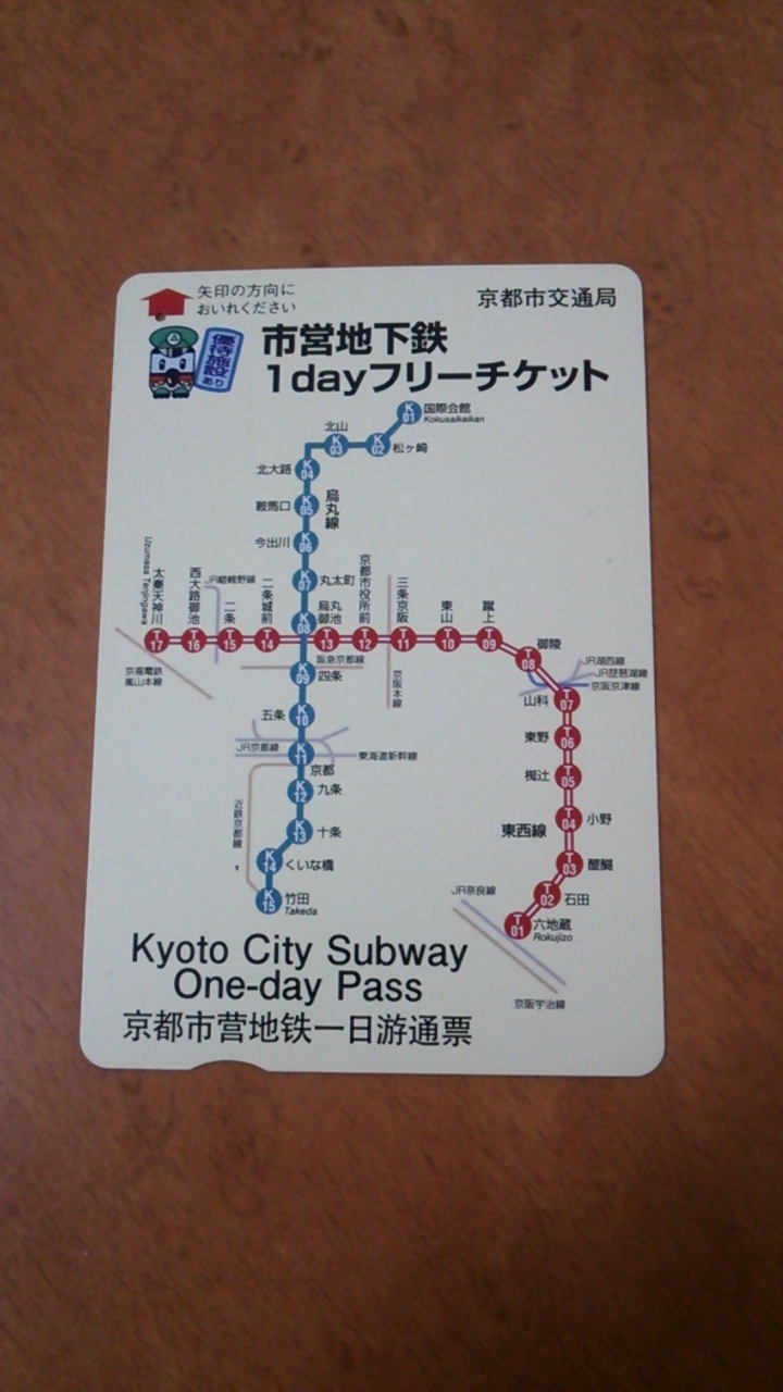 地下鉄のみを利用する場合、京都1日観光乗車券よりも「市営地下鉄1dayフリーチケット」がお得