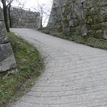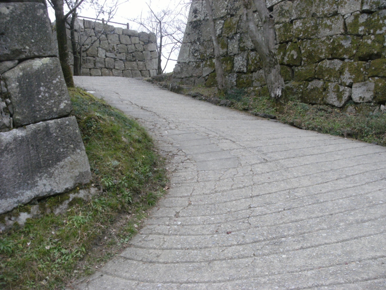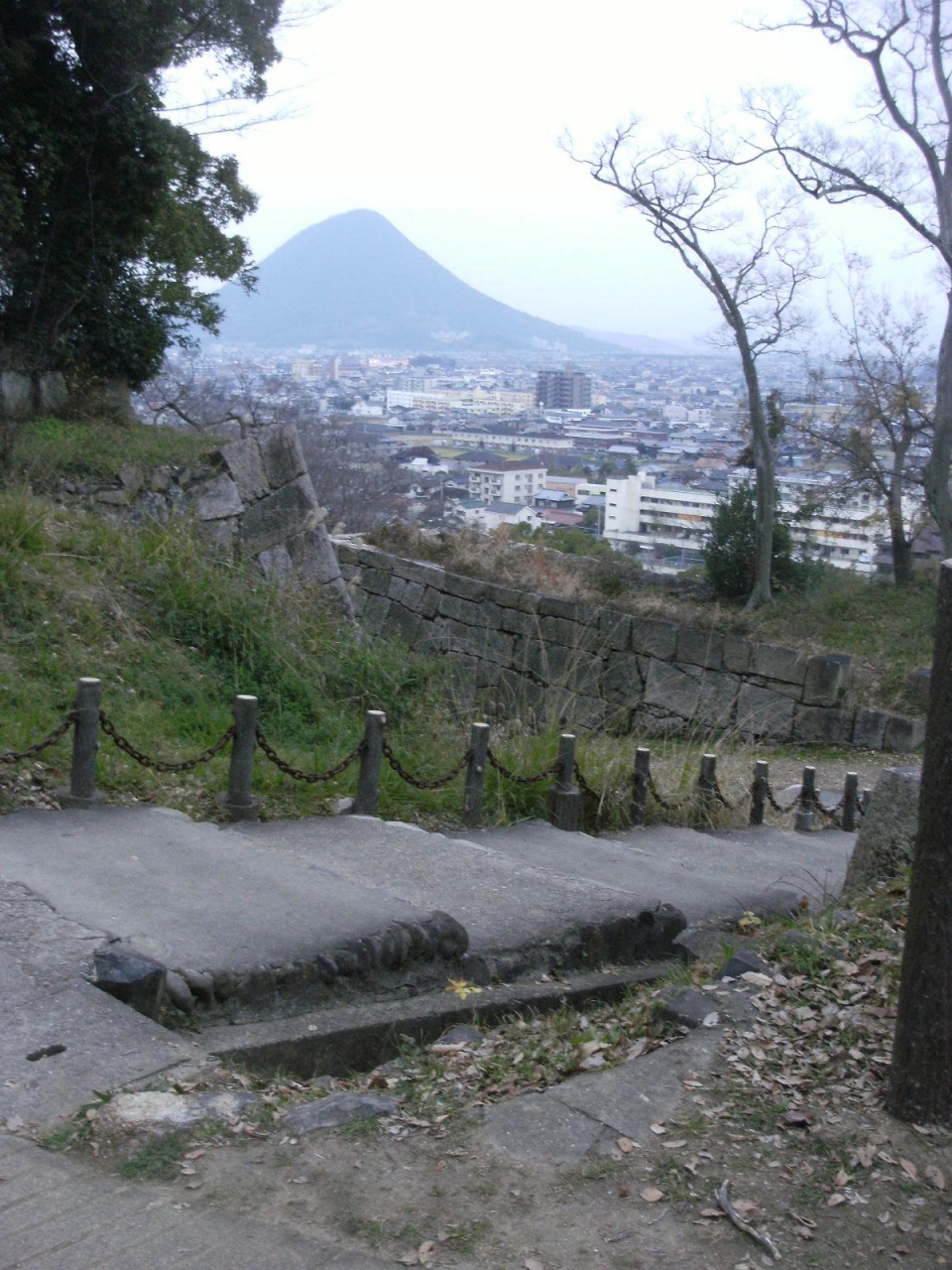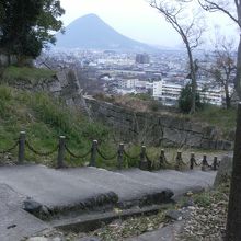 丸亀城を丸ごと含んで亀山公園になっていて 丸亀城の門より手前に亀山公園と書かれた石碑が立っています。 亀山公園は 現存の天守閣もあり 何より石垣がとても見事です。多くの急な山の上にあるお城では 石段や舗装のない坂道が多いですが 亀山公園はきれいに舗装されていて 雨の後でも歩きやすそうです。