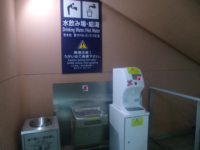 今回、事前購入のカップ麺を空港内で頂こうとして、第一ターミナル内で給湯器の有無をインフォメーションで尋ねてみた所、きっとないだろうなあという思惑とは裏腹に、実はきちんと設置されていました。場所は1F到着ロビーの外からターミナルビルに向かって右側、エスカレーター下部にあるトイレの前付近です。ついでにその他の場所に関空内に給湯器があるかどうか照会しましたが、出発階の女子トイレには赤ちゃんのベビーミルク用の給湯器が設置されているとのことでしたが、それ以外にカジュアルに使える給湯器は今のところここしかないという説明でした。尚、勿論、購入者に関しては、関空内にあるコンビニでもお湯を頂くことは可能です。