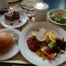 此方のレストランは、単にお食事をするレストランと、キャラクターとお写真などを撮ることができるエリアとに分かれています。どちらもお食事はカフェテリア。キャラクターとお写真の撮れるエリアは予約制で、お食事はセットメニューから選択し、精算を済ませると係りの方が席に案内して下さいます。お食事中に、ミッキー、ミニー、プルートのキャラクターが各席に回ってきてくれて、楽しい時間が過ごせます。