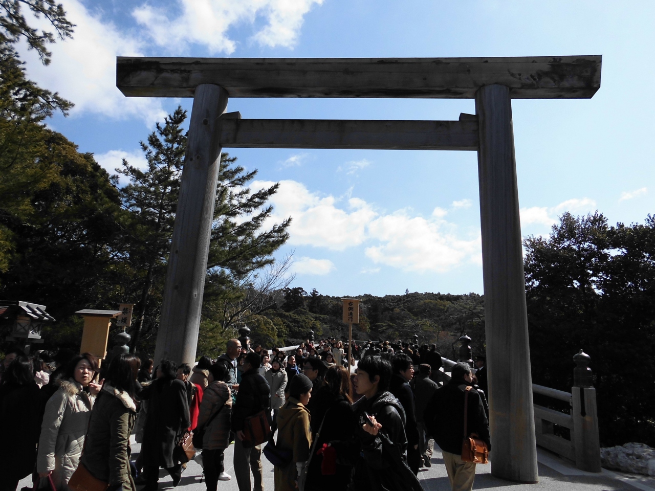 おはらい町から内宮に入るときに鳥居をくぐるとすぐ宇治橋です。五十鈴川を渡って神聖な内宮に入る際にこの橋で気持ちを切り替えます。日常の世界から神聖な世界への架け橋と言われます。