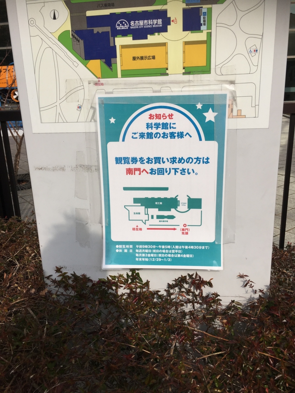 名古屋市の白川公園の中にある科学館。どこかでここは博物館だと聞いていたんだけれど、違うようだ。歴史があって何度もテーマが増えたようだ。公園側から見て大きなロケットが横たわっている。時間がなくて見学できなかったけれど、次回もう一度来てみたい。球形の建物はプラネタリウムらしい。大通りから見て、入場口と思しきところに行くと南側行けと言う看板がある。無駄足になります。