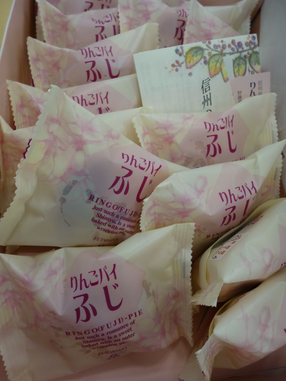 「二葉堂」は、19世紀初期に創業した、地元長野では有名なお店のようです。出張時に連れて行ってもらった総本店は洒落た洋館風の建物でした。和菓子とともに興味を惹かれた「りんごパイふじ」は、老若男女問わず好まれそうな名品でした。