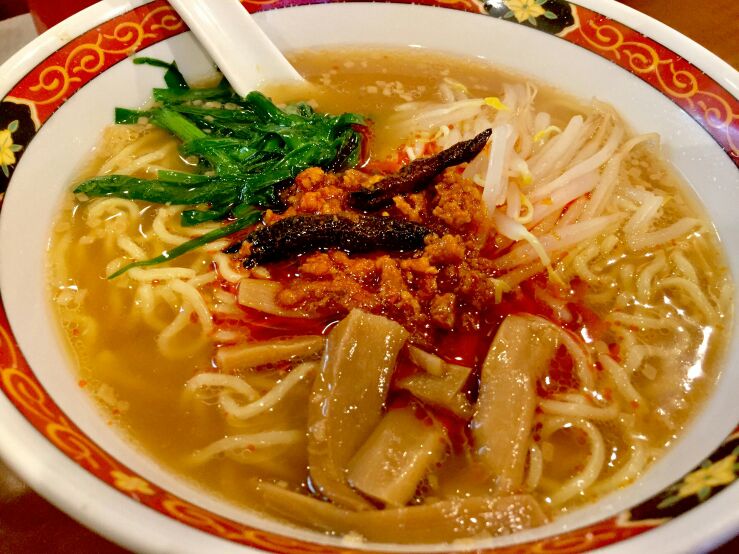 入口で食券を買おうとしたら一万円札しかなっかったのでお店の中で支払いをしました。カウンターに座って7~8分で台湾ラーメン、そのあとすぐに焼き餃子(6ケ)が出てきました。「肉汁が飛び散るのでご注意ください」と張り紙があります。「台湾旅行に行くぞ」と思うきっかけをくれたお店。