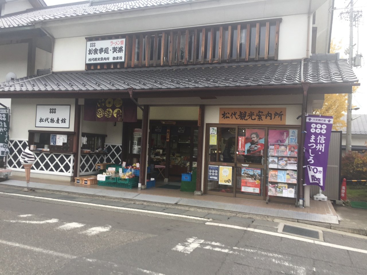 旧松代駅があるバス停から真田邸に行く間にあります。普通の商店のような佇まいなので、もともとはお店だったのかもしれません。地元の物産館と食堂、さらに本来の観光案内所もいう3つの機能があり、ある意味では、松代のことがなんでも分かる場所と言えます。
