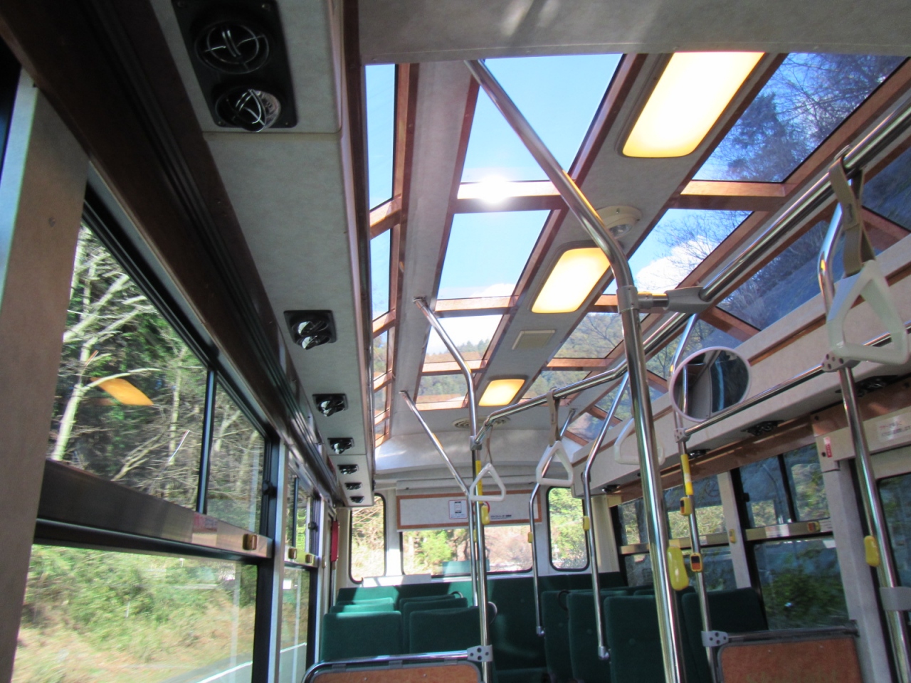 それでも、乗車する距離と回数が多かったため、ワンデーチケットの方がお得で、観光施設めぐりバスは、まだ設備が新しいのと、天井から差し込む光で、車内が明るく新鮮な雰囲気でした。